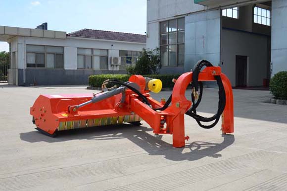 The mower head is attached to a hydraulic arm allowing you to swing the mulcher beyond your tractors wheels. The head may be pivoted hydraulically up to 90 degrees for hedge or hillside work or down 55 degrees for ditch or bank work. Connect it to our optional 4-way hydraulic control valve with a hydraulic float and the mulcher will follow the contours of the terrain.A flail mower doesn’t throw grass, instead it cuts finely and leaves the cuttings on the ground where it was cut making it an excellent choice for those places where you could cause damage by throwing debris. Highway mowing and park maintenance often use flail mowers because they are less likely to throw objects during cutting.