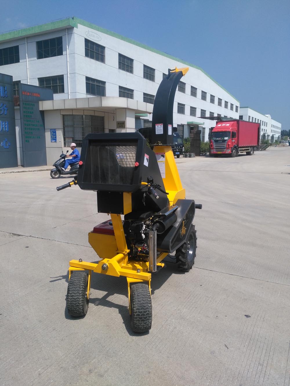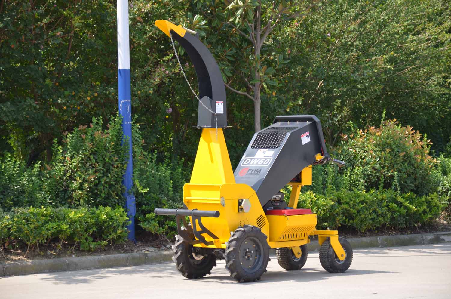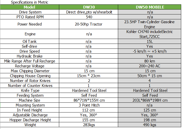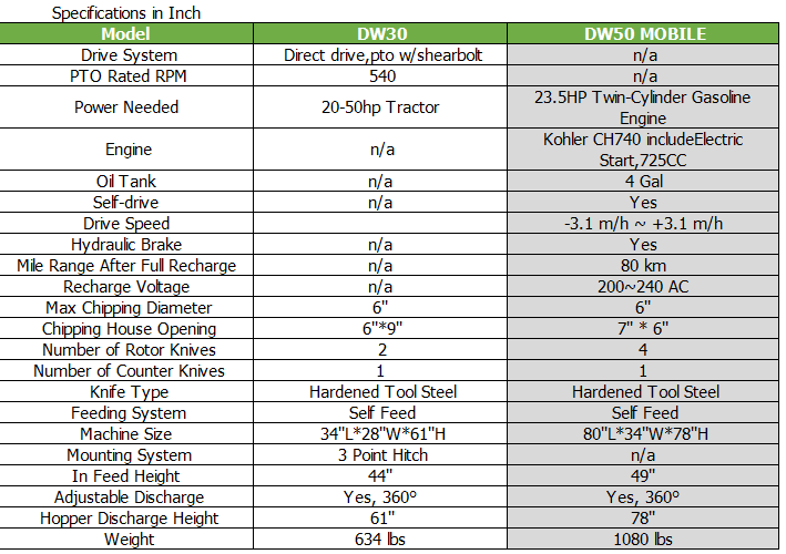 Our DW50 Mobile is a powerful Wood Chipper Shredder for use when you don’t have tractors, ATV Quad or other utility vehicles. This unit allows you to drive 80 km after battery fully recharged. The total width of the machine is only 86 cm/ 34”, it allows you to drive through doorway easily.You can chip whenever and where ever you want with the push of a button.